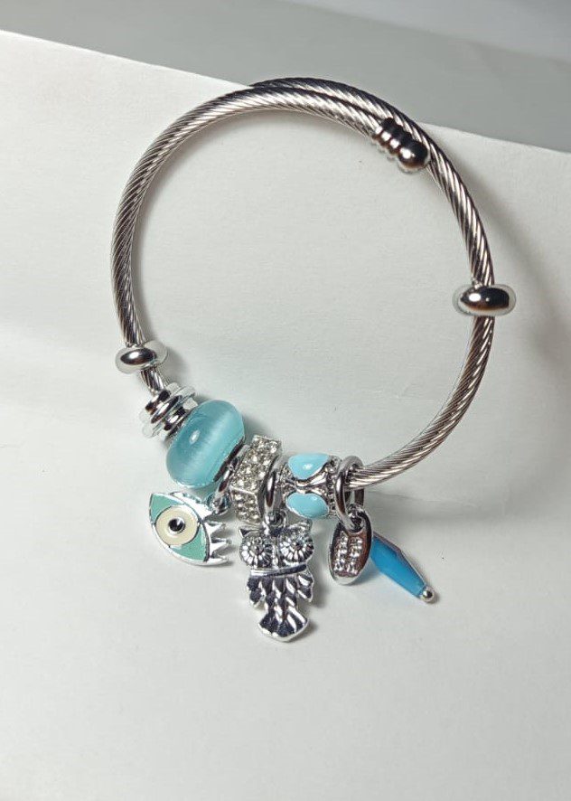 Pulsera Con Charms | Buho | Ojo | Azul