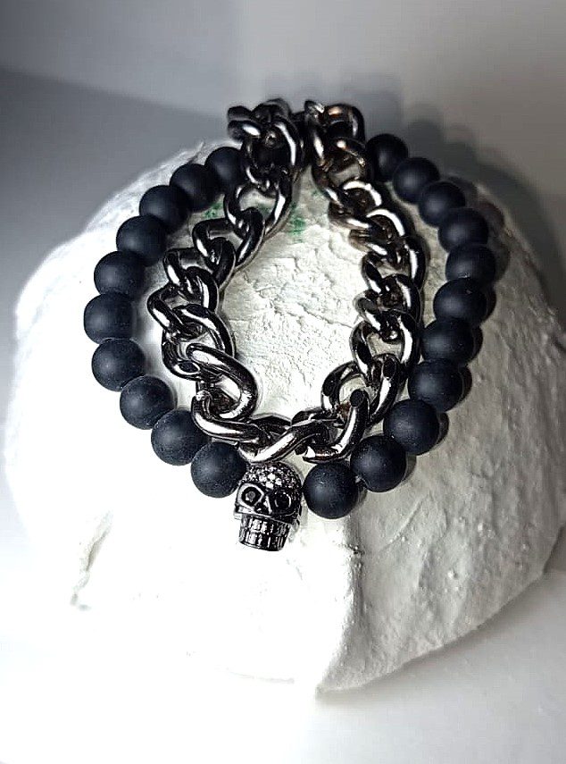 Pulsera Con Charms | Calavera | Doble | Plateado | Negro