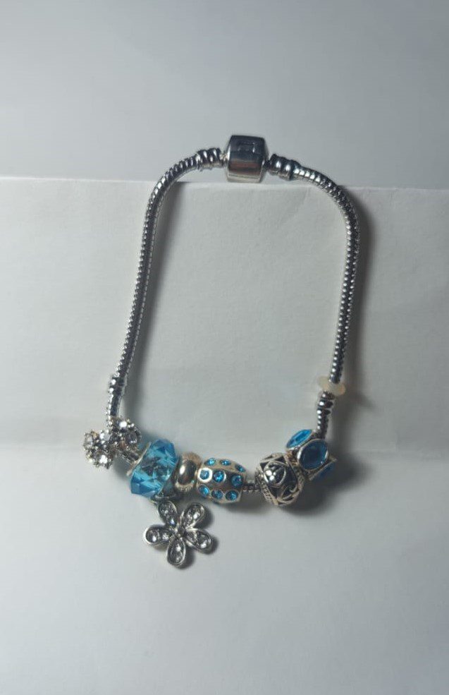 Pulsera Con Charms | Flor | Azul | Brillo