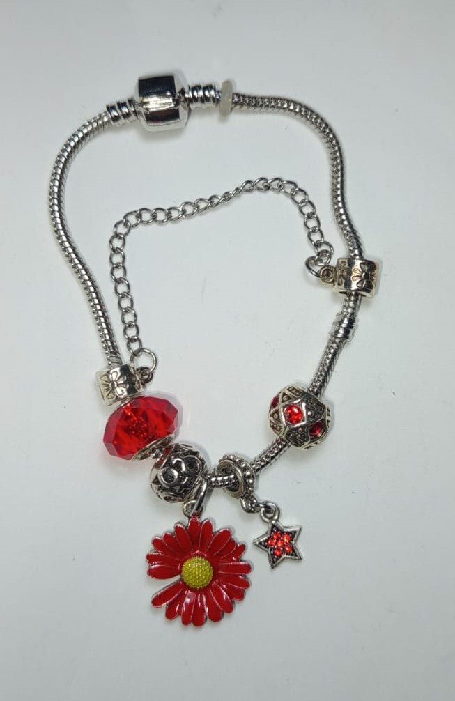 Pulsera Con Charms | Girasol | Estrella | Rojo