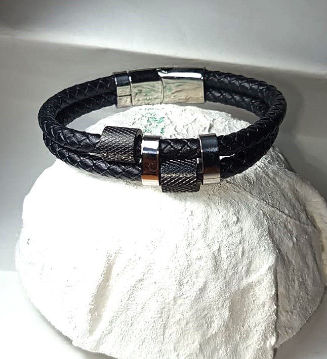 Pulsera Con Charms | Trenzado | Plateado | Negro | Doble
